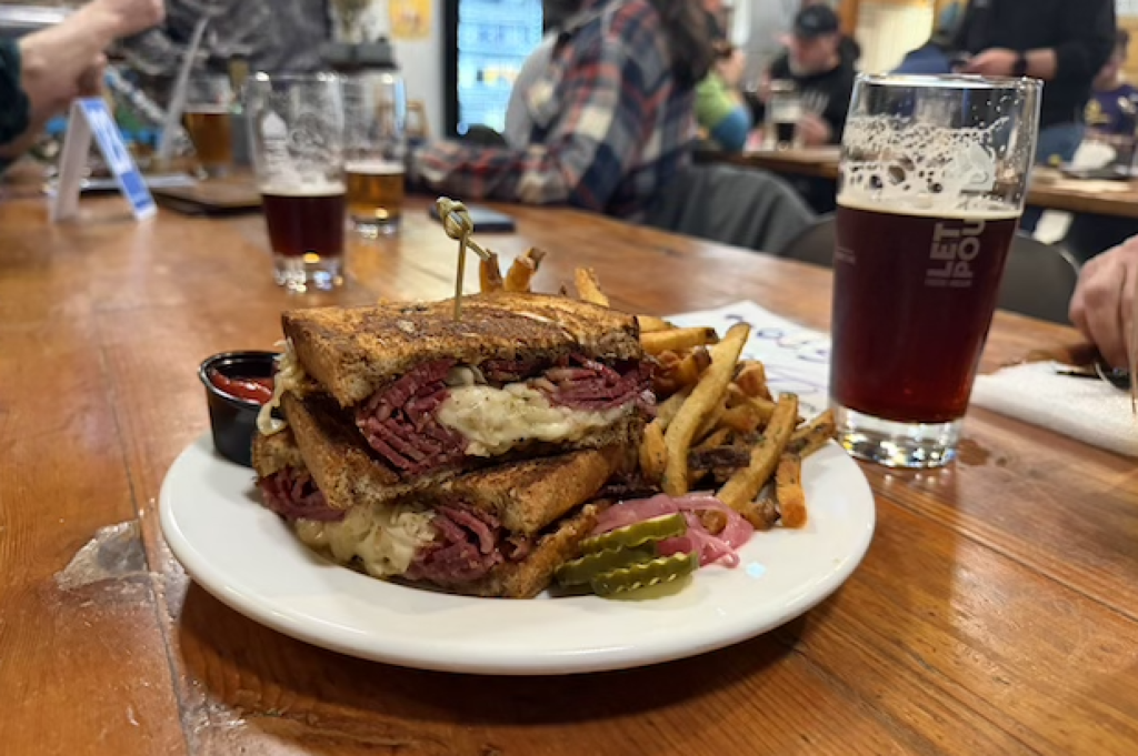 Falling Sky has some fantastic food. Their rueben is delicious, and their truffle fries make an appearance at every community night