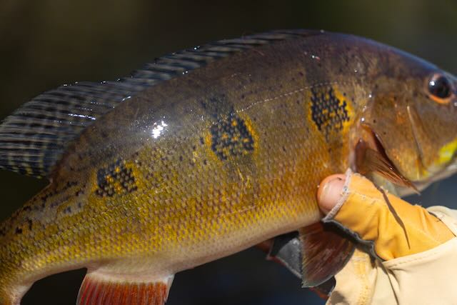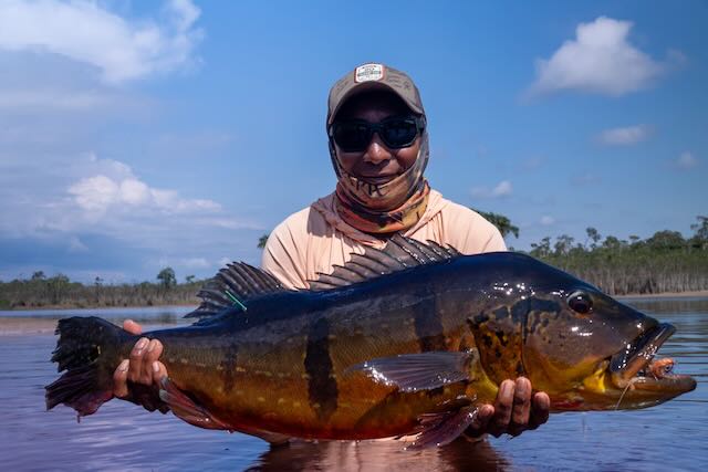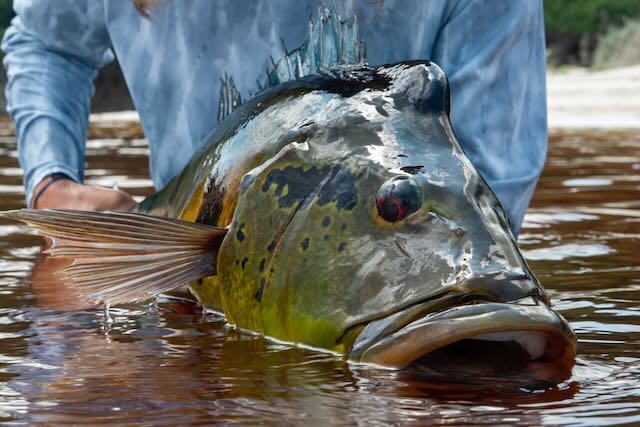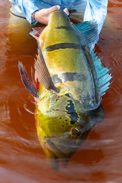 Fly styles varied but 2/0 to 4/0 black and orange, and white and red flies that pushed water were consistent performers. Poppers in red and white were also effective. This trip is not just about big fish. Butterfly Peacock Bass are super plentiful and can be caught in numbers. Willing “Butterflies” are around 2-6lbs and are super hard fighting. No need to change flies for the smaller fish, they readily gobble up big and small flies.