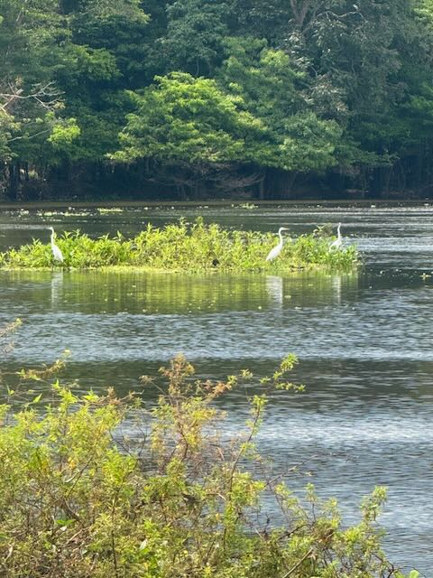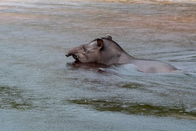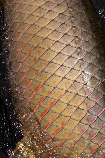After a float plane ride from our floating accommodation on Rio Marie to Tefe, Brazil we took a fast boat approximately one hour to the Mamiraua Reserve and Pirarucu Lodge. Pirarucu means Arapaima in Portuguese. The Mamirauá Reserve is more than 1 million hectares, and was created to preserve Arapaima and their habitat. The area is renowned for its fantastic wildlife, with 427 species of mammals, 1,300 bird species, 378 species of reptiles, and more than 400 species of amphibians. Our cabins sat on floating logs in a wide spot in the river. Caymans and Arapaima rolled, swam and splashed 24 hours a day. Monkeys could be heard in the distance most of the time and innumerable bird species flew and called all day and most of the night. The place buzzed with life!