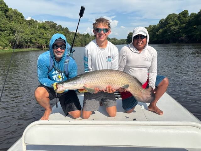 Our group of 8 anglers flew to Manaus Brazil late August for a combination trip targeting Peacock Bass and Arapaima. The first seven days were spent on the Rio Marie fishing for Peacocks. The next four days/five nights would be spent in the Mamiraua Reserve at Pirarucu Lodge seeking 100+ pound Arapaima.